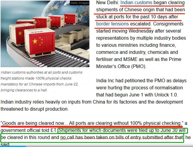 终于扛不住了,印度海关开始清关滞留在港口的中国货物!